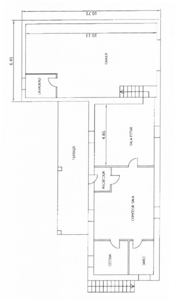 Living area ground floor: dining room, open kitchen, bathroom, living room and covered terrace (porche).