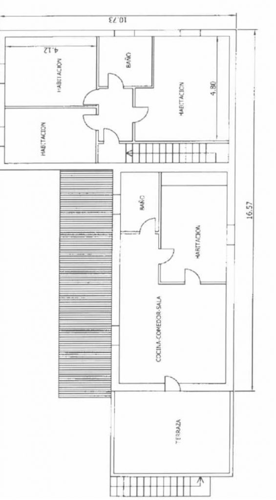 Living area upper floor: 3 bedrooms and 1 bathroom.