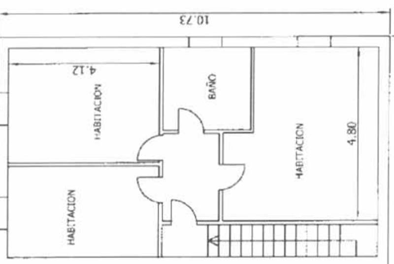 Living area upper floor: 3 bedrooms and 1 bathroom.